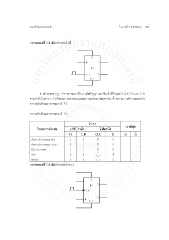 1.༛ตอวงจรตามรูป༛ท้าการทดลองปງอนระดับสัญญาณลอจิกขຌาทีไอินพุต༛D༛CLK༛PS༛ละ༛CLR༛