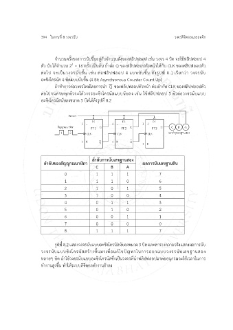 รูปทีไ༛8.2༛สดงวงจรนับบบอะซิงครนัสนับลงขนาด༛3༛บิต༛ละตารางความจริงสดงผลการนับ