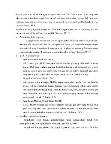 ukuran tubuh yang disesuaikan dengan umur dan tingkat gizi seseorang. Pada umumnya