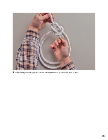 4. The working end now goes back down through the crossing turn from front to back. 344