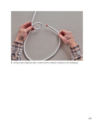 1. Leaving a long working end, make a counterclockwise overhand crossing turn in the standing part.