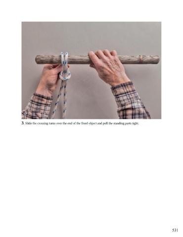 3. Slide the crossing turns over the end of the fixed object and pull the standing parts tight. 531