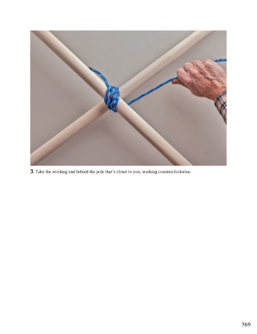 3. Take the working end behind the pole that’s closer to you, working counterclockwise. 569