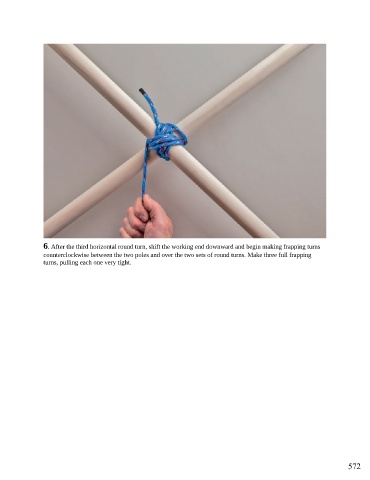 counterclockwise between the two poles and over the two sets of round turns. Make three full frapping