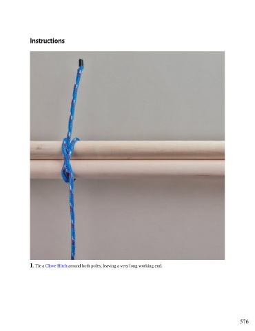Instructions 1. Tie a Clove Hitch around both poles, leaving a very long working end. 576