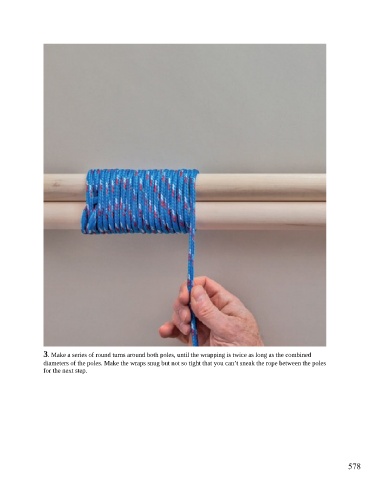 diameters of the poles. Make the wraps snug but not so tight that you can’t sneak the rope between the poles