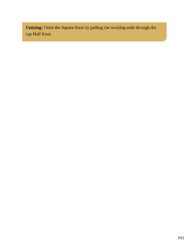 Untying: Untie the Square Knot by pulling the working ends through the top Half Knot. 593
