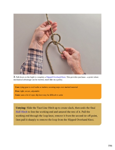 3. Pull down on the bight to complete a Slipped Overhand Knot. This provides purchase—a point where
