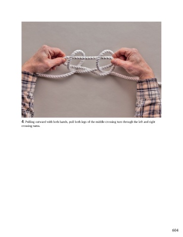 4. Pulling outward with both hands, pull both legs of the middle crossing turn through the left and right crossing turns. 604