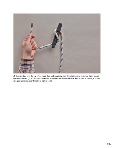 2. Take the line over the top of the cleat, then underneath the near horn in the same direction that it passed