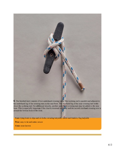 horn. This is especially important if the cleat is mounted vertically and the second overhand crossing turn is