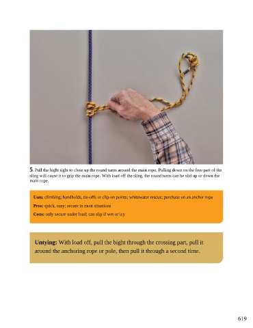 sling will cause it to grip the main rope. With load off the sling, the round turns can be slid up or down the