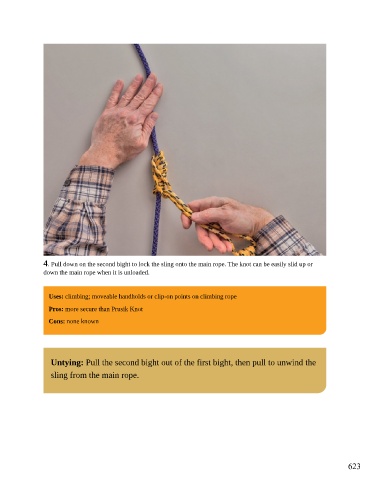 4. Pull down on the second bight to lock the sling onto the main rope. The knot can be easily slid up or