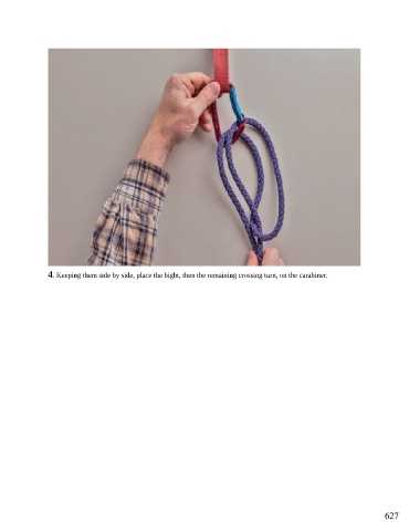 4. Keeping them side by side, place the bight, then the remaining crossing turn, on the carabiner. 627