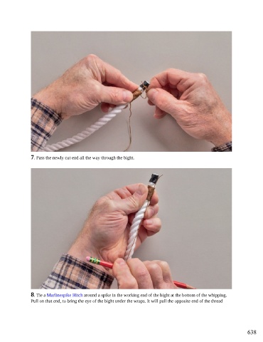 8. Tie a Marlinespike Hitch around a spike in the working end of the bight at the bottom of the whipping.