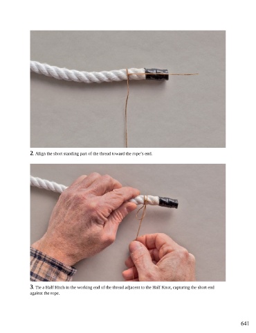 3. Tie a Half Hitch in the working end of the thread adjacent to the Half Knot, capturing the short end