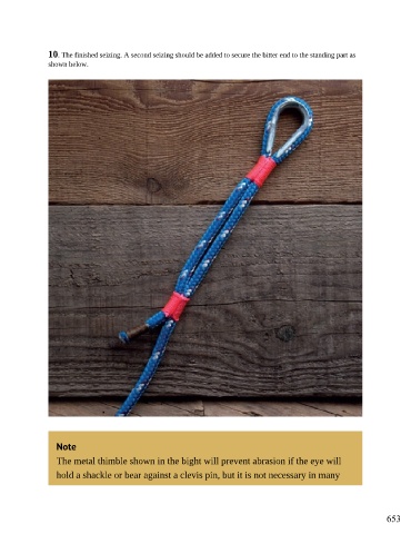10. The finished seizing. A second seizing should be added to secure the bitter end to the standing part as