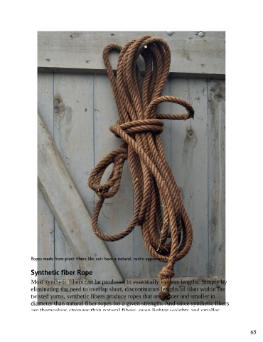 diameter than natural fiber ropes for a given strength. And since synthetic fibers