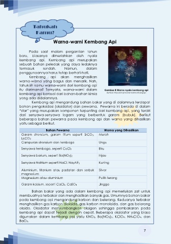 kembang api berasal dari bahan-bahan kimia Sumber: https://bit.ly/warna-warnikembangapi