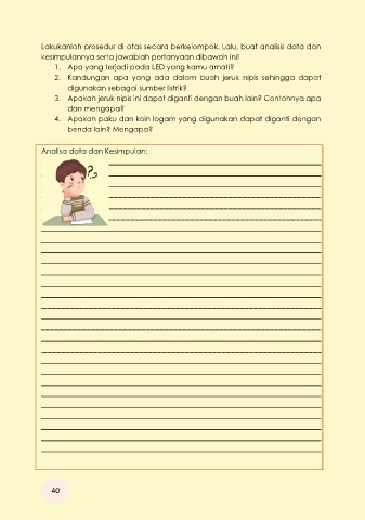 Lakukanlah prosedur di atas secara berkelompok. Lalu, buat analisis data dan