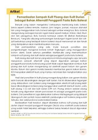 sampah kulit pisang dan kulit durian sebagai pengganti pasta batu baterai.
