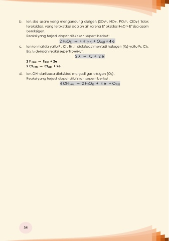 c. Ion-ion halida yaitu F , Cl , Br , I dioksidasi menjadi halogen (X2) yaitu F2, Cl2,
