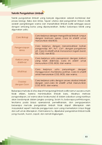 dan sulit untuk diterapkan. Oleh karena itu, diperlukan pengolahan limbah batik