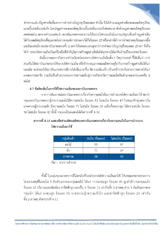 58 ไม่สนใจ ร้อยละ 42 ทั้งนี้ รายละเอียดแสดงได้ดังตารางที่ 4-10