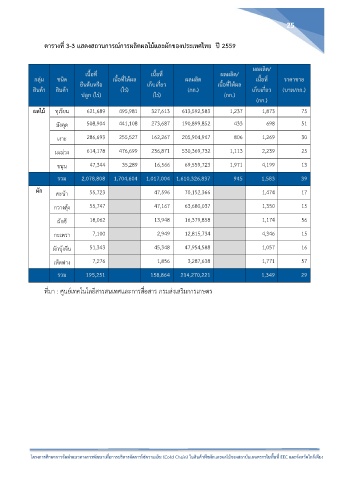 ตารางที่ 3-3 แสดงสถานการณ์การผลิตผลไม้และผักของประเทศไทย ปก 2559