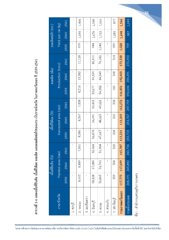 ตารางที่ 3-6 แสดงเนื้อที่ยืนต้น เนื้อที่ให้ผล ผลผลิต และผลผลิตต่อไร่ของเงาะ เป็นรายจังหวัด ในภาคตะวันออก ปก 2559-2561 2559 56,874 47,667 113,231 253,715