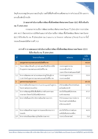 (EEC) ที่เกี่ยวข้องกับ กษ. ปี 2560-2564 รวม 3 แผนงาน 16 โครงการ วงเงินรวม 1,796.62 ล้านบาท ทั้งนี้