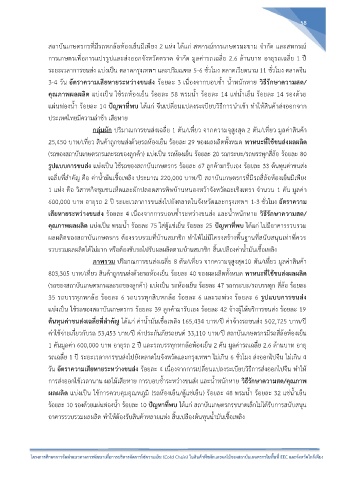 ภาพรวม ปริมาณการขนส่งเฉลี่ย 8 ตัน/เที่ยว จากความจุสูงสุด10 ตัน/เที่ยว มูลค่าสินค้า