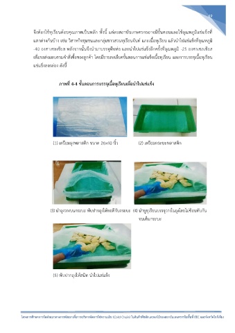 (3) น าถุงวางบนกระบะ พบปากถุงให้พอดีกับกระบะ (4) น าพูทุเรียนบรรจุวางในถุงโดยไม่ซ้อนทับกัน