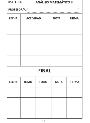 MATERIA: ANÁLISIS MATEMÁTICO II PROFESOR/A: FECHA ACTIVIDAD NOTA FIRMA FINAL FECHA TOMO FOLIO NOTA FIRMA 18