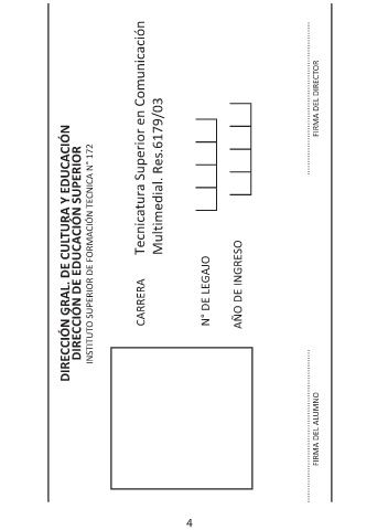 DIRECCIÓN DE EDUCACIÓN SUPERIOR DIRECCIÓN GRAL. DE CULTURA Y EDUCACIÓN INSTITUTO SUPERIOR DE FORMACIÓN TECNICA N° 172 Tecnicatura Superior en Comunicación CARRERA Multimedial. Res.6179/03 N° DE LEGAJO AÑO DE INGRESO ......