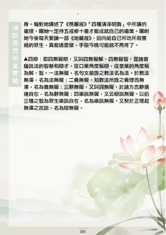 身。我對她講述了《楞嚴經》「四種清淨明誨」中所講的