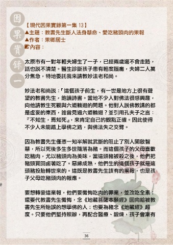 主題:教書先生斷人法身慧命、愛吃豬頭肉的果報