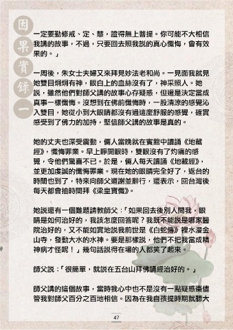 並更加虔誠的懺悔罪業。現在她的眼睛完全好了,返台的
