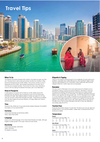 Dubai and Abu Dhabi charge a Tourism Fee. The fee is per room per night and payable direct to your accommodation. Please refer to individual hotel in this brochure for details.