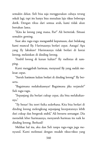”Kita ke lorong yang mana, Ra?” Ali berteriak. Situasi