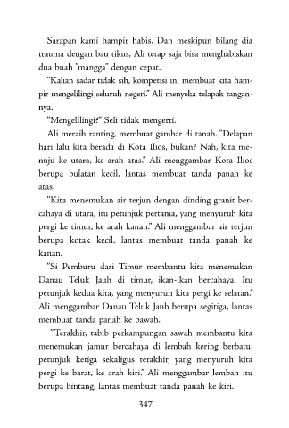 nuju ke utara, ke arah atas.” Ali menggambar Kota Ilios