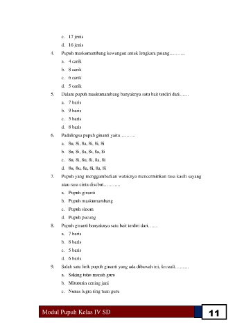 5. Dalam pupuh maskumambang banyaknya satu bait terdiri dari……