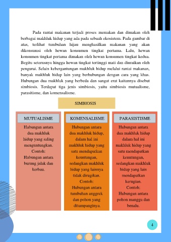 simbiosis. Terdapat tiga jenis simbiosis, yaitu simbiosis mutualisme,