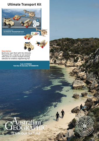 Code: ULTGW0563 Pack Size: 24 | Barcodes: 9319236823194 Ultimate Transport Kit Description: Build your own fleet with the Ultimate Transport Kit, a hands-on set packed with parts to create multiple moving vehicles for endless engineering fun.