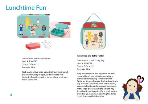 Pack snacks with a smile using the Play School Lunch Box! Durable, easy to open, and decorated with favourite characters perfect for preschool or picnics. Bento styled box.