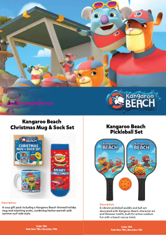 A vibrant pickleball paddle and ball set decorated with Kangaroo Beach character art and lifesaver motifs, built for active outdoor fun with a beach rescue twist.