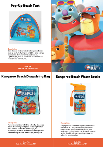 Pack for adventure with this colourful Kangaroo Beach drawstring backpack! Featuring the full crew printed under the official logo, it’s lightweight, durable, and easy to clean—perfect for swimming lessons, beach trips, or daycare.
