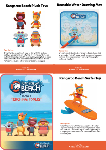 Bring the Kangaroo Beach crew to life with this soft and cuddly plush collection! Featuring all your favourite rescue cadets in their signature lifesaver outfits, each plush is made from ultra-soft, child-safe fabric with embroidered details. Perfect for playtime adventures or bedtime snuggles.