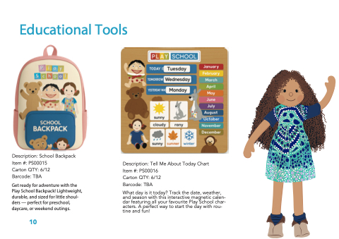 What day is it today? Track the date, weather, and season with this interactive magnetic calen- dar featuring all your favourite Play School char- acters. A perfect way to start the day with rou- tine and fun!
