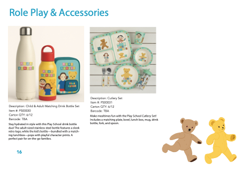 Stay hydrated in style with this Play School drink bottle duo! The adult-sized stainless steel bottle features a sleek retro logo, while the kid’s bottle—bundled with a match- ing lunchbox—pops with playful character prints. A perfect pair for on-the-go families.